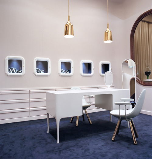 Una sensibilidad retro, una joyería para estrellas de cine de los 50’s, en la cual se han cuidado desde el mobiliario, los textiles, la iluminación, hasta el último detalle. Y aunque dentro de este mundo de fantasía, cada selección de la joyería tiene su propio entorno, el ambiente general se las arregla para parecer tranquilo y con un aspecto armónico. La joyería incluye la Colección Octium, piezas exclusivas, así como selecciones de Hanna Martin, Ivanka Trump y de la Pequeña Pipa y otros.