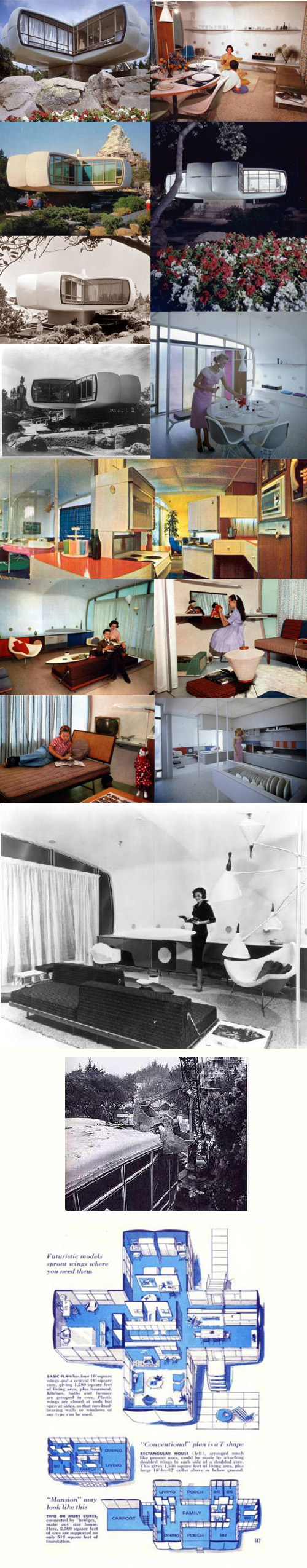 La “Monsanto House of the Future” inaugurada en Disneylandia (Anaheim – California) en el año 1957 por la compañía Monsanto, Massachusetts Institute of Technology y Walt Disney Imagineering. La casa del futuro mostraba todos los adelantos tecnológicos que se verán en el futuro de 1986: el uso de la tecnología en el hogar, la cual nos permitiría, en cierta medida, mejorar nuestra calidad de vida. La idea general es la de aprovechar la biotecnología para ahorrar energía, tener control de lo que sucede en nuestro hogar, mejorar el confort, la comunicación y demás, realizada completamente en fibra de vidrio: muebles, electrodomésticos, utensilios, absolutamente todo era de plástico.