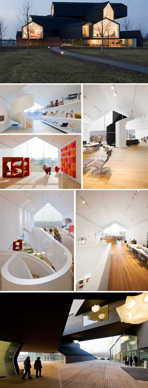 La idea de la arquitectura ha sido diseñada espacialmente en la idea de una casa típica formada por 5 plantas, y doce casas superpuestas con vertiginosos salientes de 15 metros, donde sus suelos penetran en la fachada del nivel inmediatamente inferior, los espacios interiores se han mantenido en color blanco, cediendo todo el protagonismo a los muebles, las proporciones y dimensiones de las salas evocan situaciones espaciales familiares y cotidianas. Desde la parte exterior puedes ver el interior y disfrutar del entorno, también tiene una cafetería para 80 personas, la tienda del Museo de Diseño de Vitra, una sala de negocios y un espacio para exposiciones.