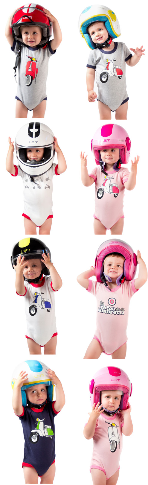 Sin lugar a dudas, La chica de la Lambretta presenta esta colección de bodies para bebés como su producto estrella. El amor y la pasión por el scooterismo clásico se transforman aquí en divertidos diseños para los más pequeñitos de la casa haciendo cantera desde la infancia.