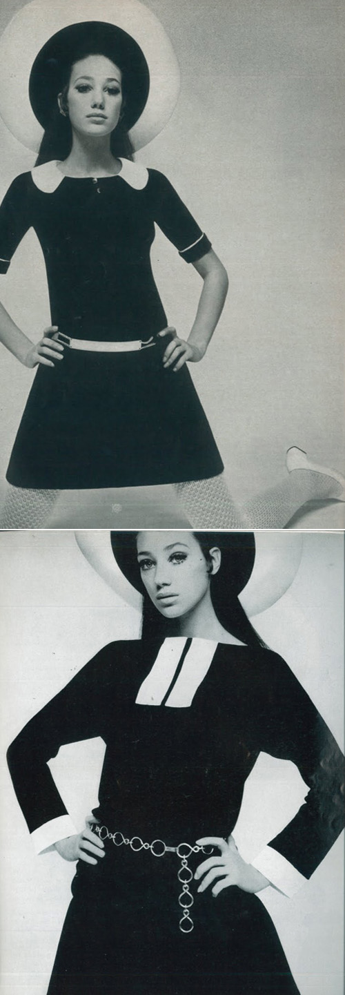 El blanco y negro tiene efectos ópticos presentes en trajes y vestidos de corte sobrio y muy femenino.