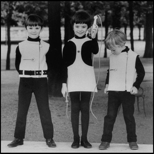 Space age mod fashion black and while Pierre Cardin outfits