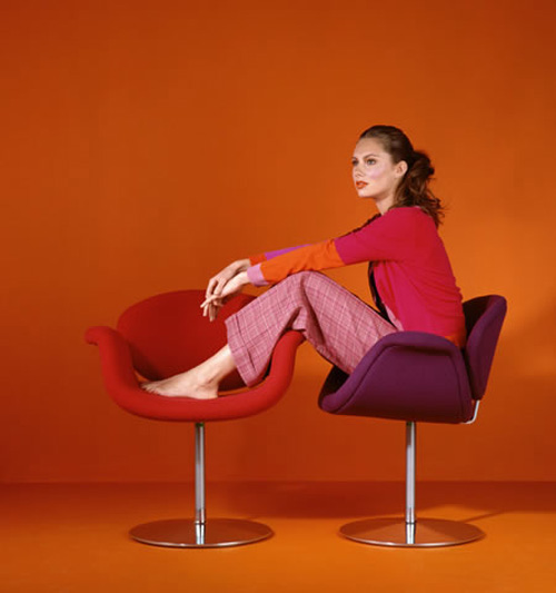 Pierre Paulin diseñó esta pequeña obra de arte en 1965 anticipandose la estación del flower power. La silla reproduce las formas armónicas del tulipán abierto. Al diseñador le gustaba decir: “Una silla tendría que ser algo más de una simple silla funcional. Hace falta que sea confortable, divertida y colorista”.