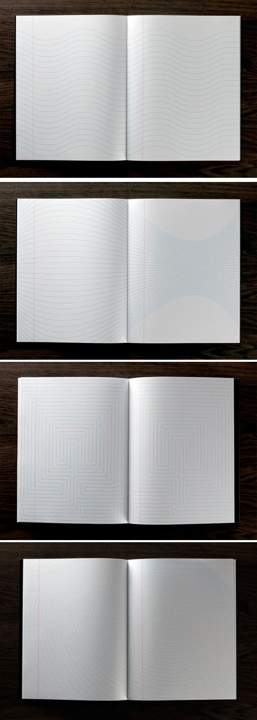 Una creación asombrosa por Marc Thomasset la agencia de diseño TMsprl, con sede en Bruselas. Al desviar las líneas tradicionales en un cuaderno o un bloc de notas, las páginas se convierten en la composición gráfica de una calidad muy alta.