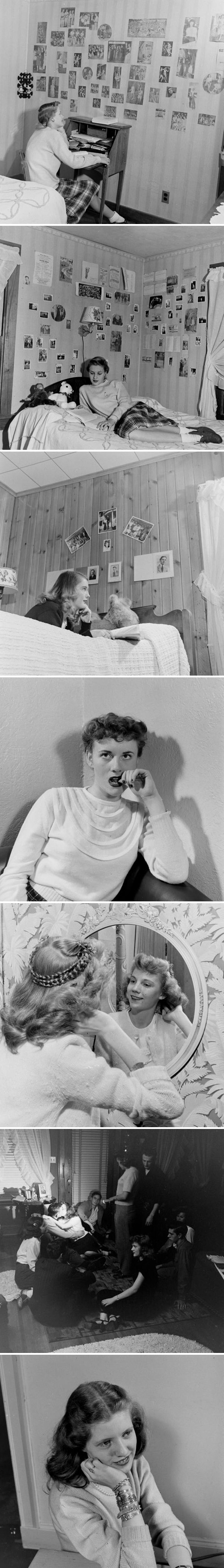 Esta colección de fotos, tomadas por la revista Life, se centró en un grupo de estudiantes de la escuela secundaria en Iowa, 1947. La Segunda Guerra Mundial llegaba a su fin y una nueva generación de jóvenes estaba a punto de reventar, listos para consumir ricos batidos, ver películas en pantallas gigantes, y escuchar discos de vinilo de brillantes cantantes, y la floreciente escena de música rock ‘n’roll.
