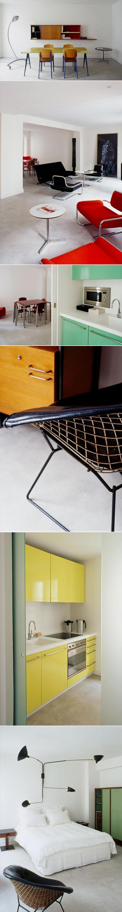Este es un ejemplo perfecto de la apreciación del diseñador al diseño, que incorpora el diseño de muebles de Marc Newson, Jean Prouvé, Marc Newson, Arne Jacobsen, Charlotte Perriand, Pierre Paulin y Sornay Andre, con la tecnología de Bang & Olufsen. Estos apartamentos tienen las características de un hotel-casa en un lugar lujoso, un lugar donde uno puede sentirse relajado. Los apartamentos de 100 metros cuadrados (uno de un dormitorio y dos de dos dormitorios) con entrada privada. Los apartamentos son blancos y de estética modernista, con destellos de color provenientes de la cocina (diferentes en cada uno de los tres apartamentos).